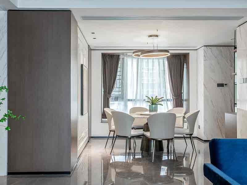 設計師在傳統法式的基礎上衍生出有新法式面貌的風格,在保留法式的傳統裝飾圓度下做簡化處理,形態簡約而不失奢華,打造利落率性的氣質,呈現出時尚與奢華的空間。